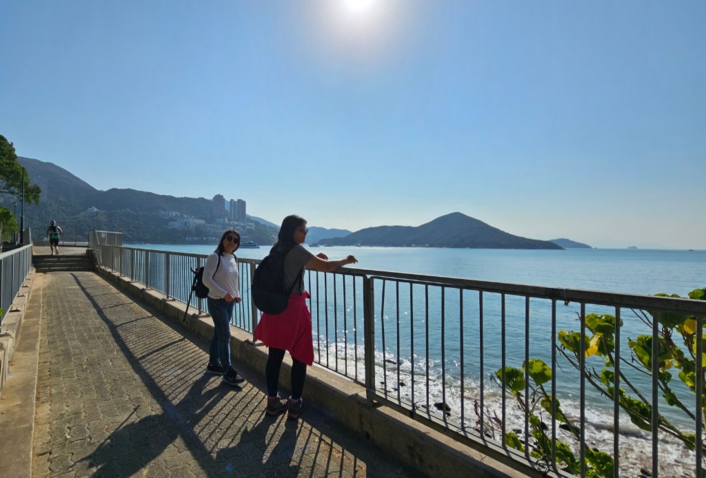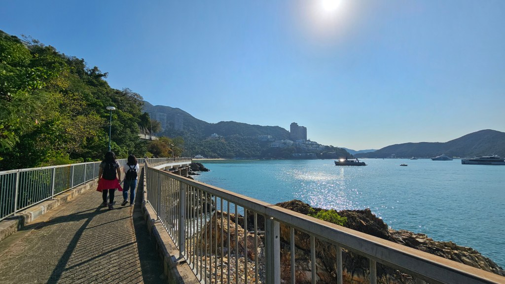 路線: 海洋公園站 C 出口 ➡️ 香島道 ➡️ 苗鐘徑 ➡️ 深水灣海灘 ➡️ 麗海堤岸路 ➡️ 踏入 (“活力環島長廊 ~ 晴沙徑":淺水灣海灘 ➡️ “鎮海樓" 廟 ➡️ 中灣海灘 ➡️ 南灣海灘) ➡️ 赫蘭道 ➡️ 舂坎角道 ➡️ 環角道 ➡️ 赤柱廣場 ➡️ 赤柱大街