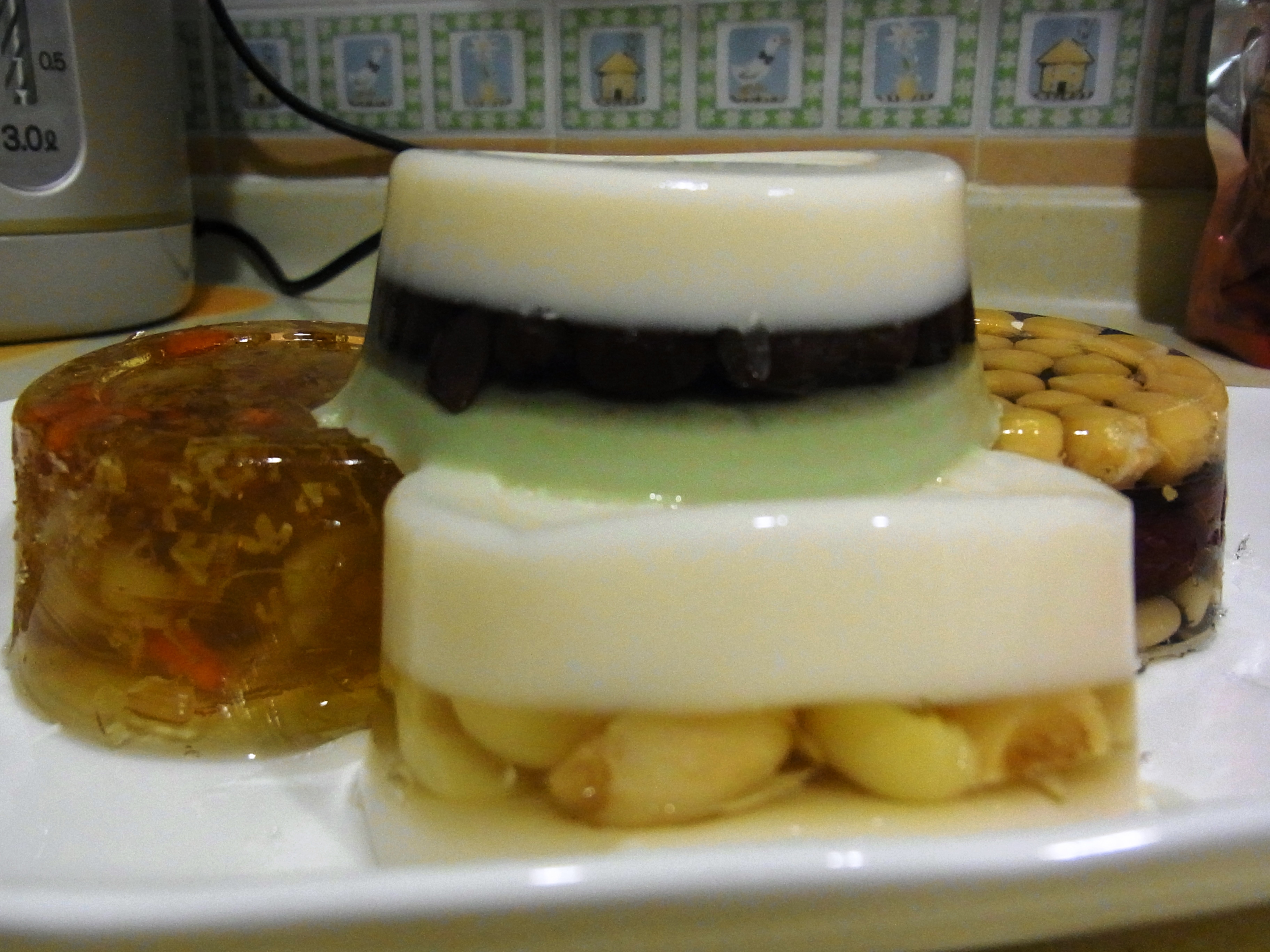三色豆糕 圓肉杞子桂花糕 椰汁蓮子糕 綠茶椰汁紅豆糕