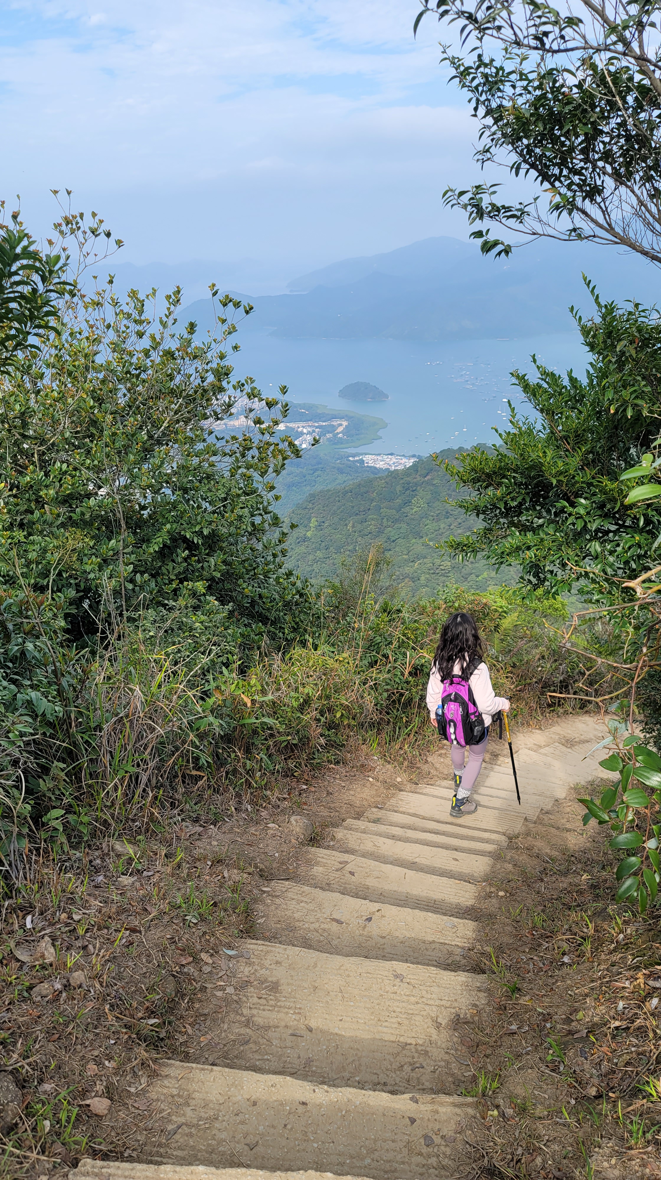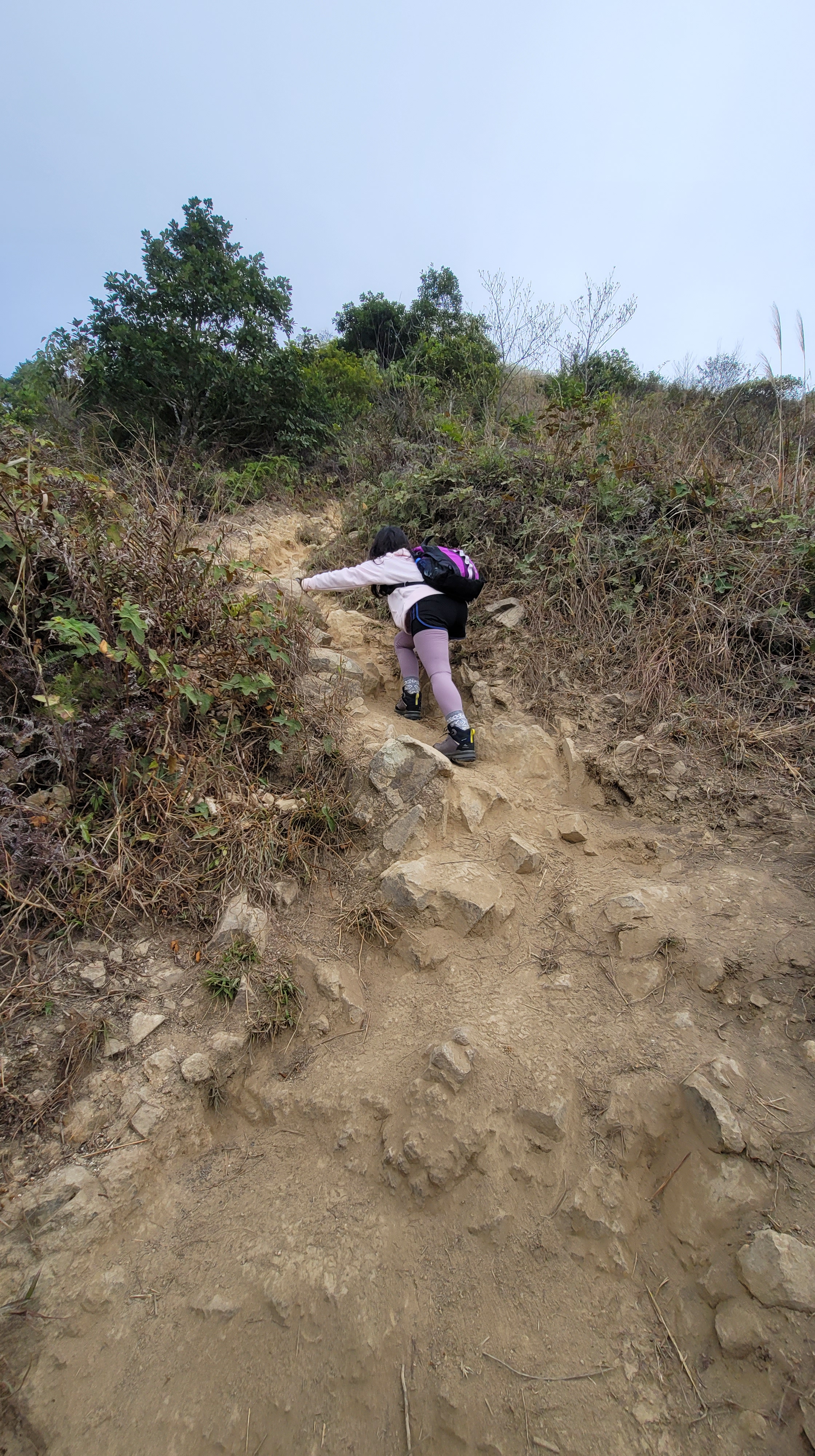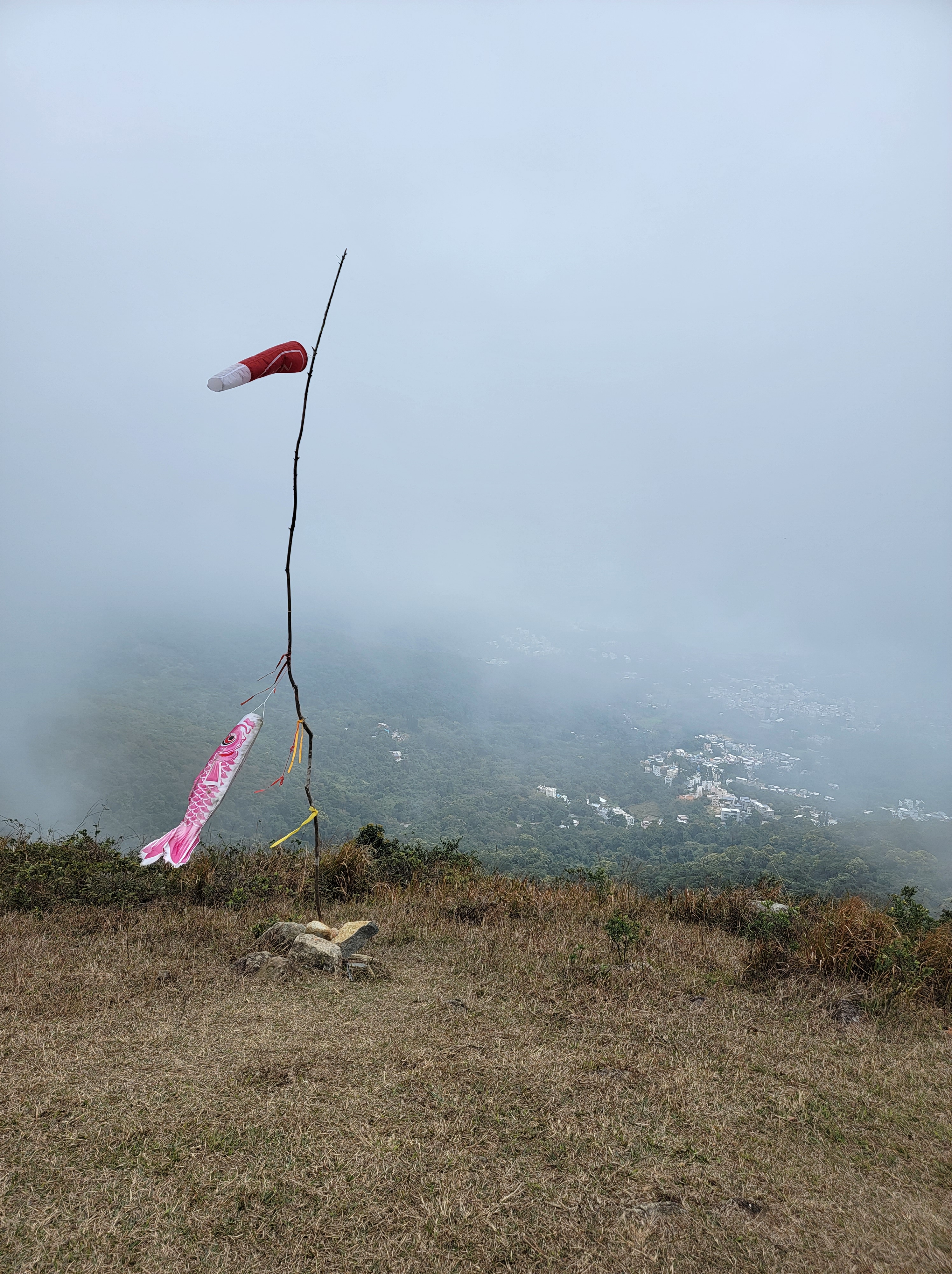 由昂平高原上走至大金鐘的路程雖短 (536M),但山路略為傾斜兼滿佈了浮沙碎石,需手足並用攀登。登峰後視野比昂平更為廣闊,可盡覽西貢外海及馬鞍山景色。可惜今天超大霧,甚麼景色都看不見